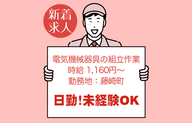 [NEW]電気機械器具の組立作業(藤崎町・派遣)