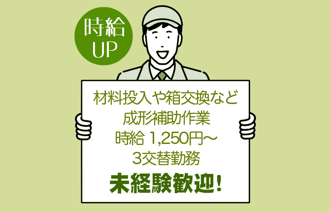 未経験歓迎!材料投入や箱交換などの成形補助作業◎